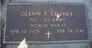 Pfc Glenn F. Chaney was a chauffeur before he enlisted in Louisville, Kentucky on 14 August 1943.Pfc Chaney was taken prisoner of war in the vicinity of Rittershoffen-Hatten, France on 9 January 1945.