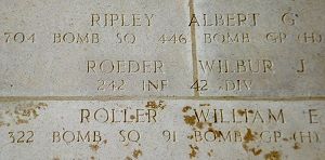 Pfc Roeder was a firefighter with the Chicago Fire Department in Chicago's Chinatown before he was drafted in 1944.He was taken prisoner on 9 January 1945 and died as in POW camp Stalag 4B. His remains were never recovered.