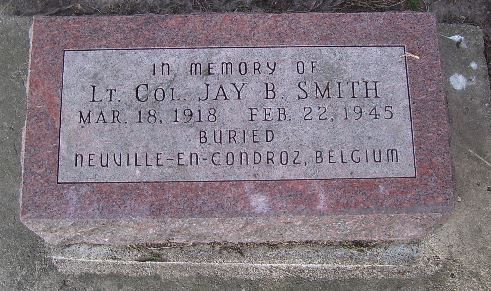 Lt Col Jay B. Smith is remembered at Hillside Cemetery in Sedgwick, Harvey County, Kansas, with a memorial marker.