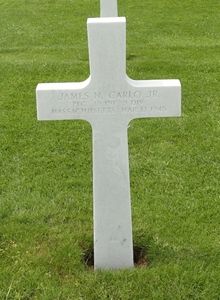 James N. Carlo Jr. was employed by the Prudential Life Insurance Company before he enlisted on 24 March 1943 in Springfield, Massachusetts. He was overseas for only nine months when he was killed.Source of information: Raf Dyckmans, www.wwiimemorial.com, www.ancestry.com The Berkshire Evening Eagle / 1940 Census / Family Tree, IDPF