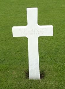 Pvt Forest L. Dickes enlisted on 3 April 1943 and was sent overseas in January 1944.His brother Stewart is buried next to him.