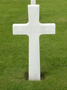 Cpl Carter Palmer graduated from Yale University in 1942 and was employed at Brown and Sharpe Manufacturing Company's apprentice school in Providence.He volunteered for the US Army in Providence, Rhode Island on 17 September 1942. He was selected for Army Specialized Training Program (A.S.T.P.) and attended University of Alabama and Georgetown University. He was transferred to the Office of Strategic Services in Washington, DC on 18 October 1943. On 6 October 1944 he was transferred to the Infantry and was sent overseas as a replacement in February, 1945.