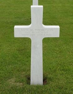 Pvt Jack M. Thompson was a stock clerk before he enlisted in Baltimore, Maryland on 6 February 1943.He first served with the glider infantry before he was transferred to the medical corps. He was killed by machine gun fire while attending to a wounded soldier in a foxhole.
