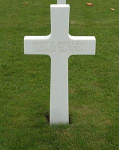 Pvt Harry E. Brousseau went overseas July 1944.He was wounded on 22 March 1945 and died of his wound on 29 March 1945.