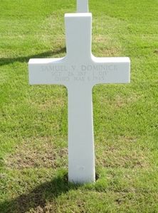 Sgt Samuel V. Dominick attended high school for two years before he volunteered for the Army of the United States at Fort Thomas Newport, Kentucky on 12 February 1942.He was originally assigned to the 1023rd National Guard Squadron at Napier Field and later transferred to the infantry.