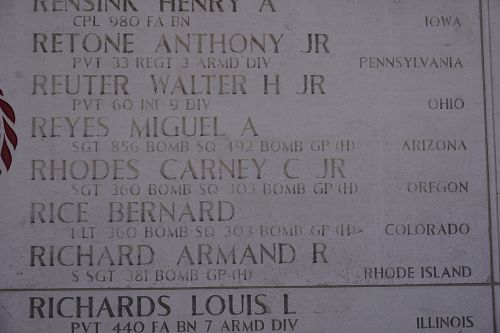 The aircraft was hit by gunfire from two ME-109's immediately after the formation left the target. The ship peeled off, went down out of control, and exploded above the overcast. One parachute was observed coming out it went out of sight.In addition to the crew of ten, a photographer, Sgt Carney C. Rhodes Jr., was on board. All were killed. Only the body of Hugh F. Gigney Jr. was recovered when it washed ashore at Esbjerg, whre he was initally buried on 3 December 1942. He is now interred at Ardennes Cemetery.
