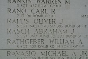 S/Sgt Abraham J. Rasch graduated from Erasmus Hall High School and was employed at Warner Woven Label Company.He enlisted at Fort Jay, New York on 29 August 1942.