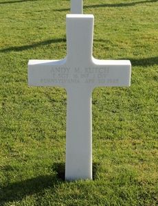 T/Sgt Andy M. Kutch enlisted in New Cumberland, Pennsylvania on 29 January 1942.He had been in combat with the first army in Africa, Sicily, France and Germany and had been awarded the Bronze Star for herioc achievement in connection with militairy operations against the enemy in Saint Cloud, Algeria, on November 9, 1942. In the face of hostile fire, Sgt. Kutch courageously assisted in the establishment and maintenance of a road block and at great personal risk prevented the enemy from bringing up reinforcements. His heroic acts and unselfish devotion to duty contributed materially to his unit's success.
