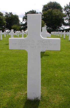 Sgt Lloyd D. Hagan joined the Air Corps of the U.S. Army Reserve at Patterson Field, Fairfield, Ohio on 17 September 1943.German fighters put approximately six 20mm shells through the fuselage exploding in the cockpit and killing the pilot, co-pilot and flight engineer. Shells also killed the ball turret gunner and the tail gunner. The other four crew members survived and were taken prisoner.