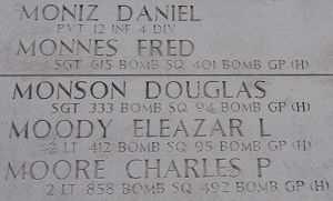 Sgt Douglas Monson was a chauffeur.He volunteered for the Air Corps in Los Angeles, California on 14 December 1942.