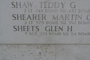 T/Sgt Glen H. Sheets graduated from Central High School in 1938 and was employed at Colorado Fuel and Iron Company.He enlisted on 20 June 1942 in Pueblo, Colorado.