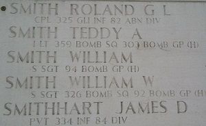 S/Sgt William Smith enlisted on 4 November 1942, Huntington, West Virgina.The airplane was shot down by fighters. It ditched in the North Sea. Ten crewmembers were killed, one was taken prisoner.