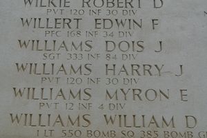 Pvt Harry Williams enlisted at Jefferson Barracks, Missouri on 23 March 1944.Source of information: Raf Dyckmans, Terry Hirsch, www.wwiimemorial.com, www.archives.gov – WWII Enlistment Record,