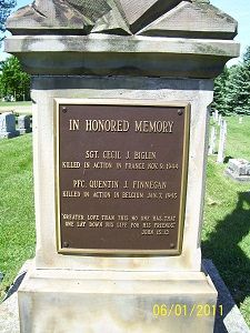 Pfc Quentin J. Finnegan graduated from Shelby High School in 1941, attended DeSales College at Toledo for one year and at the time of his enlistment was attending St. Joseph's College at Rennselaer, Indiana.He enlisted in Cleveland, Ohio on 11 February 1943. He was sent overseas in September 1944.