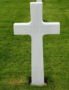 Pvt Rudolph Grznar was employed by the Timken Bearing Co. before he enlisted at Fort Hayes, Ohio on 6 July 1943.His brothers also served: John with the Air Corps in the Philippines and Steve with the Military Police in France.