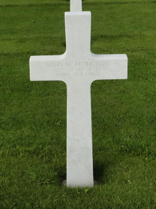 Pfc Milo H. Holcomb was a driver before he enlisted in Camp Dodge Herrold, Iowa on 19 June 1944 and was sent overseas in December 1944.Source of information: Peter Schouteten, www.abmc.gov, www.archives.gov - WWII Enlistment Record, www.ancestry.com - Headstone and Interment Record / U.S. WWII Draft Cards Young Men / 1930 Census, http://iagenweb.org - Leibrand-Whites Collection, newspaper clipping