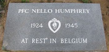 Pfc Nello Humphrey worked on a farm before he enlisted at Camp Wolters, Texas on 15 April 1944.He is remembered at Winfield Cemetery in Winfield, Texas.