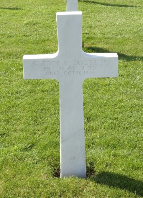 Pfc George A. Jakubs Jr. graduated from Cathedral Latin High School in 1940 and attended Case School of Applied Sciences for one year. He was employed at W.S. Tylor Company.He enlisted in Cleveland, Ohio on 10 February 1943. He was selected for the Army Specialized Training Program (A.S.T.P.) and studied at Yale University.