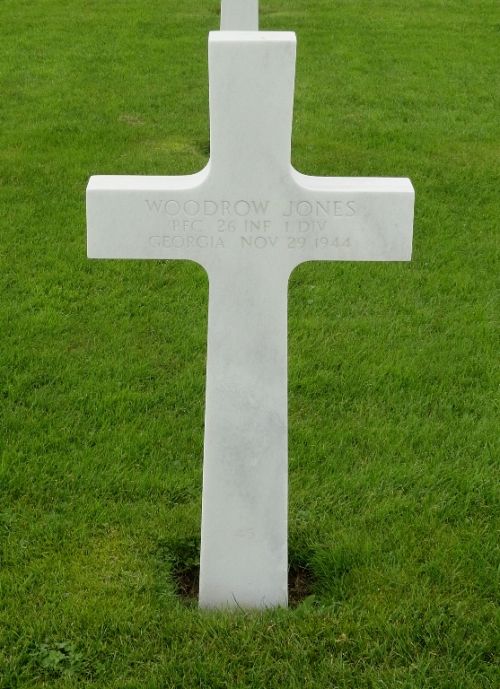 Pfc Woodrow Jones enlisted on 9 November 1942 at Fort McPherson, Atlanta, Georgia.Pfc Jones was killed by a shell fragment in the chest. Het was initially buried in a temporary grave at Henri-Chapelle on 30 November 1944. When the cemetery was given his permanent status, he was given his final resting place there on 22 April 1949.