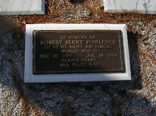 1st Lt Robert B. Powledge was orphaned at 10 years old and lived with his aunt and uncle.He graduated from Tifton High School in 1937 where he was co-captain of the football team. He attended Georgia Tech. Lt Powledge worked as a clerk.