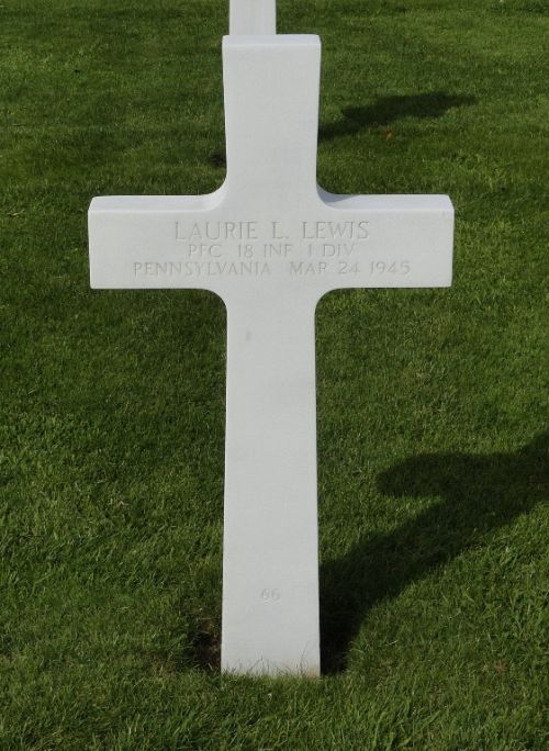Pfc Laurie L. Lewis enlisted in New Cumberland, Pennsylvania on 20 May 1944 and trained at Camp Fannin, Texas. He arrived overseas in November, 1944. Before entering the service, he was a member of the Batch & Furnace Department at the Clarion plant of Owens-Illinois Glass Company, joining that organization in April of 1942. He attended Williamsburg public school.Source of information: Raf Dyckmans, www.abmc.gov, www.wwiimemorial.com, www.archives.gov - WWII Enlistment Record, www.ancestry.com - Family Trees / WWII Draft Card, www.newspapers.com - The Clarion Democrat