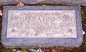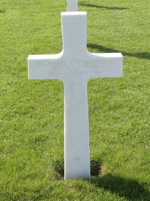 Pfc Richard A. Lindquist is remembered at the Lake Forest Cemetery, Lake County, Illinois.Source of information: Peter Schouteten, Carla Mans, www.abmc.gov, www.wwiimemorial.com, www.ancestry.com - Headstone and Interment Record / U.S. WWII Draft Cards / 1930 Census, http://9thinfantrydivision.net