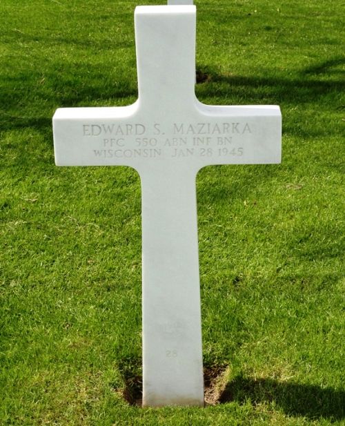 Pfc Edward S. Maziarka enlisted in the Regular Army at Fort Sheridan, Illinois on 27 October 1941.He attended 1 year of high school and worked as a woodworker before he enlisted.