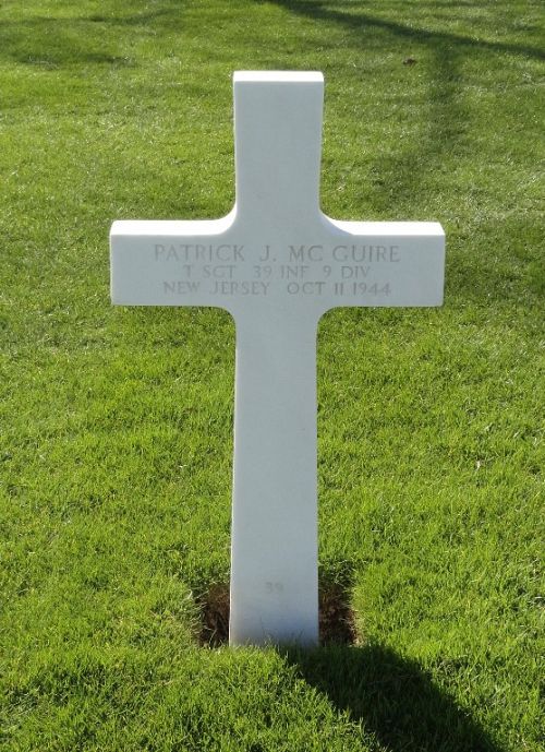 T/Sgt Patrick J. Mc Guire was a car washer before he enlisted in Newark, New Jersey on 23 January 1941.Source of information: Peter Schouteten, Carla Mans, www.abmc.gov, www.wwiimemorial.com, www.archives.gov - WWII Enlistment Record, www.ancestry.com - Headstone and Interment Record / U.S. WWII Draft Cards Young Men / 1930/1940 Census, http://9thinfantrydivision.net