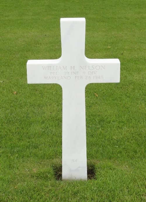 Pfc William H. Nelson worked on a farm before he enlisted in Baltimore, Maryland on 1 November 1943.Source of information: Peter Schouteten, Carla Mans, www.abmc.gov, www.wwiimemorial.com, www.archives.gov – WWII Enlistment Record, www.ancestry.com - Headstone and Interment Record / 1930 Census / U.S. WWII Draft Cards Young Men, www.findagrave.com, http://9thinfantrydivision.net