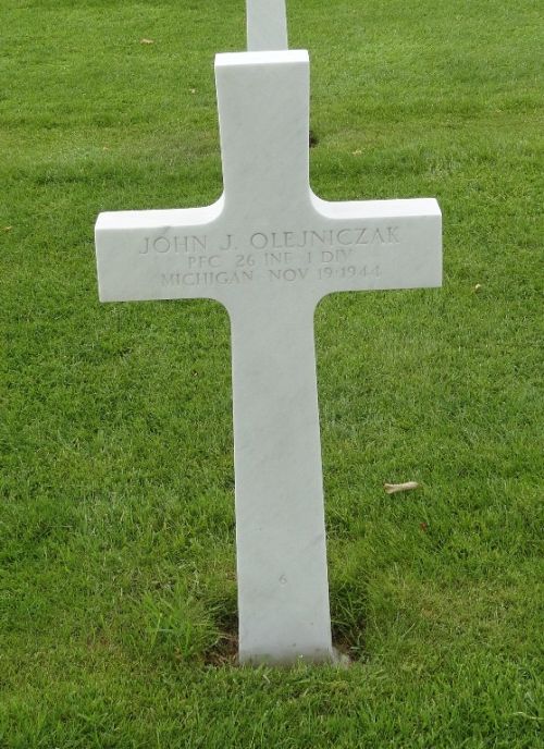 Pfc John J. Olejniczak was first buried at Block U, Row 3, Grave 51.Source of information: Raf Dyckmans, www.abmc.gov, www.wwiimemorial.com, www.ancestry.com - U.S. Headstone and Interment Records