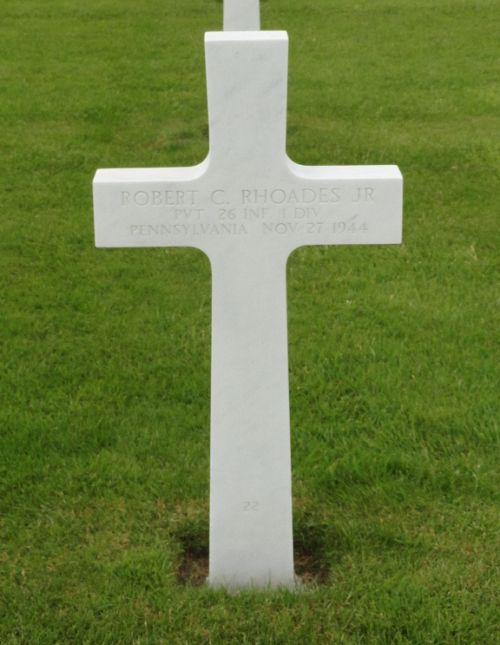 Pvt Robert C. Rhoades Jr. was a chauffeur before he enlisted in New Cumberland, Pennsylvania on 17 March 1944.Source of information: Raf Dyckmans, Terry Hirsch, Sheree Dowdle, Kathy McDermott, www.abmc.gov, www.wwiimemorial.com, www.archives.gov - WWII Enlistment Records, www.ancestry.com - 1940 Census, Schuykill County Genealogy