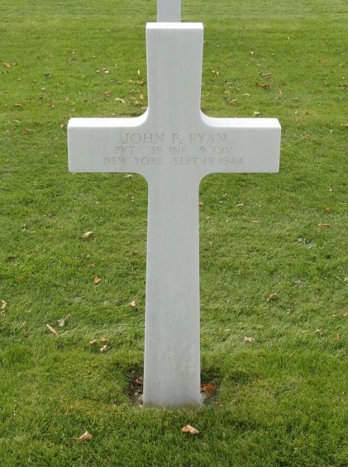 Pvt John F. Ryan was first buried at the Temporary American Military Cemetery of Fosse, Belgium.