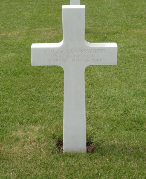 Pvt Virgle Satterwhite enlisted at Camp Shelby, Mississippi on 24 May 1944.He was first buried at Temporary American Military Cemetery Henri-Chapelle Block EE, Row 2, Grave 23.