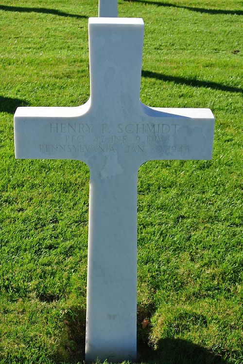 Pfc Henry F. Schmidt graduated from South Hills High School and was employed by the McIntosh-Hemphill Co.He enlisted in Pittsburgh, Pennsylvania, on 16 November 1943.