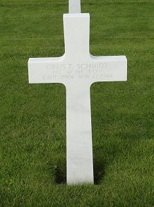 Pfc Orris F. Schmidt attended high school for three years.He enlisted in San Francisco, California on 18 June 1943.