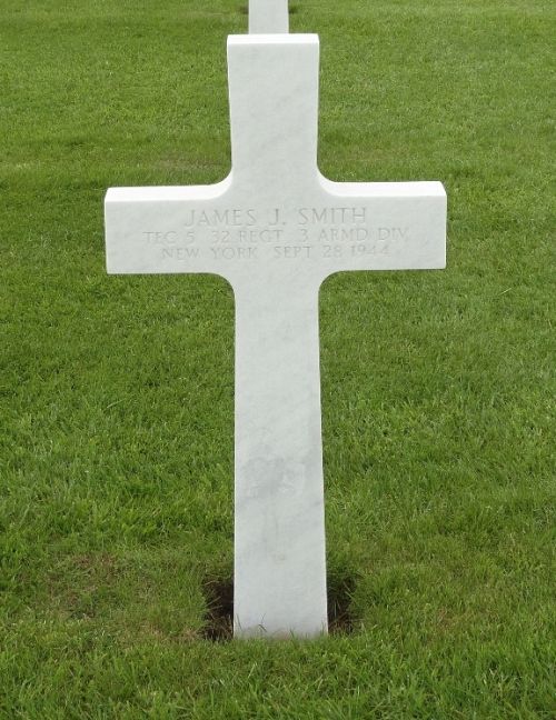 T/5 James J. Smith was a driver before he enlisted in New York City, New York on 21 April 1943.Source of information: Peter Schouteten, Carla Mans, www.abmc.gov, www.wwiimemorial.com, www.archives.gov – WWII Enlistment Record, www.ancestry.com - Headstone and Interment Record / U.S. WWII Draft Cards Young Men