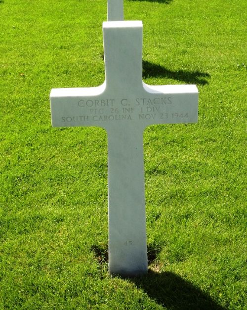 Pfc Corbit C. Stacks enlisted at Fort Jackson, Columbia, South Carolina on 6 August 1943.He worked on a farm before he enlisted.