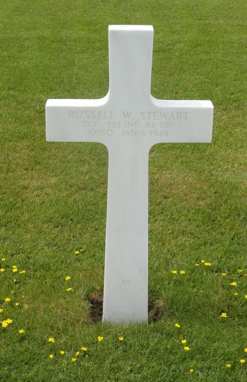 Pvt Russell W. Stewart enlisted at Fort Benjamin Harrison, Indiana on 23 June 1944.His initial burial took place on Fosse Cemetery, Namur, Belgium.