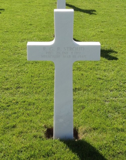 Pfc R G R Stroud was a machine operator before he enlisted at Jefferson Barracks, Missouri on 29 April 1944.