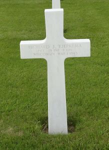 A memorial statue has been placed for Pvt Richard J. Tjepkema at the Green Mound Cemetery, Holmen, La Crosse County, Wisconsin.