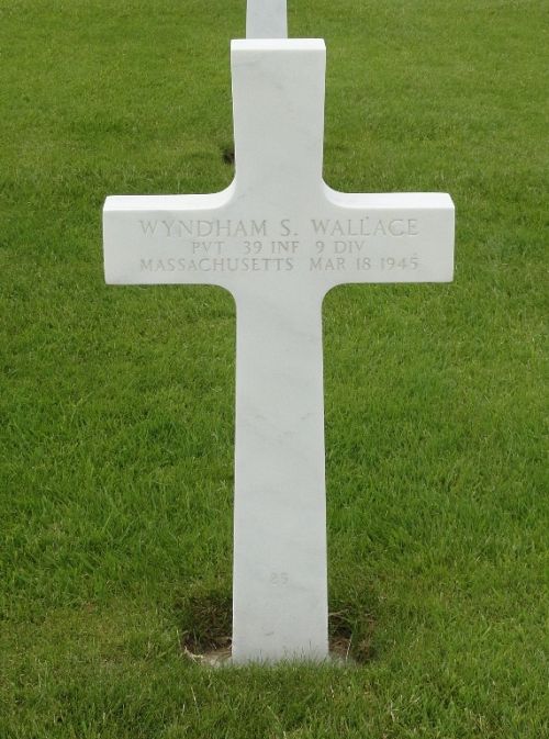 Pvt Wyndham S. Wallace enlisted at Fort Banks, Massachusetts on 13 September 1944.Source of information: Peter Schouteten, Carla Mans, www.abmc.gov, www.wwiimemorial.com, www.archives.gov - WWII Enlistment Record, www.ancestry.com - Headstone and Interment Record / U.S. WWII Draft Cards Young Men / 1930 Census, http://9htinfantrydivision.net