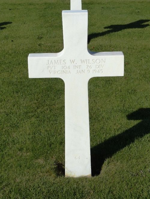 Pvt James W. Wilson enlisted in Roanoke, Virginia on 12 October 1943.He was first buried at Temporary American Military Cemetery Foy, Belgium Block A, Row 3, Grave 74.