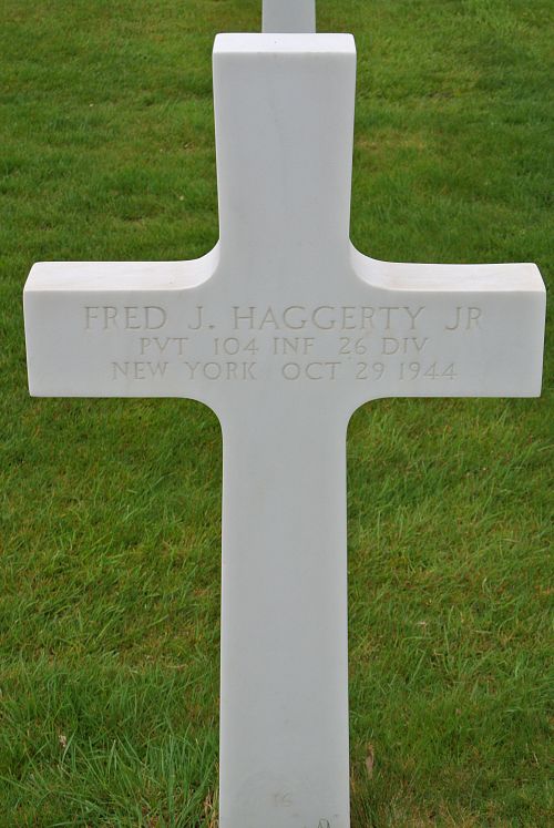 At the time of his enlistment, Fred Haggerty was a student at the Alfred University.Source of information: André Koch, Raf Dyckmans, www.abmc.gov, www.wwiimemorial.com, www.archives.gov, www.ancestry.com - 1930/1940 Census / Massachusetts, Birth Index, 1901-1960