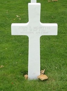 Pvt John T. Mc Intyre attended high school for four years and was a farmer.He enlisted at Camp Shelby, Mississippi on 10 October 1944.