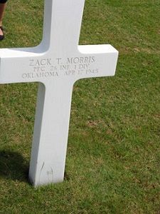 Pfc Zack T. Morris joined the National Guard in Chilocco, Oklahoma on 16 September 1940.Pfc Morris was the Sac and Fox Tribe.