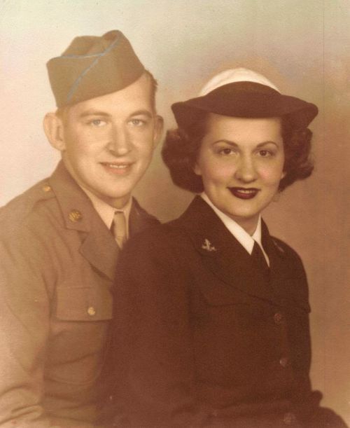 Pvt Clyde A. O'Neal enlisted in Baltimore, Maryland on 18 January 1943 and took his basic training at Atlantic City, New Jersey. He was later sent to Drew Field, Tampa in Florida. From Drew Field he went to De Ridder, Louisian, and then to Camp Livingston, Louisiana where he underwent six months training in the infantry. He was sent to Fort Meade in Maryland on 4 February 1945 leaving for overseas duty on 17 February. He landed in Belgium on 1 March 1945.On the picture he poses with his sister Bertha.