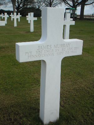 Pvt James Murray worked in the aircraft industry before he enlisted at Fort Jay, New York on 10 April 1942.Pvt Murray was killed at a roadblock in Beek together with Pvt Ralph C. Pulliam, Pfc James S. Stephenson and Pvt William B. Harris.