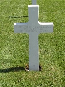 Pvt Clifford D. Youngblood enlisted at Fort Bragg, North Carolina on 22 June 1944.He entered the U.S. Army as a Private. He completed 4 years of high school, worked at A.W. Wheeler, Nylon Mills, Brevard, North Carolina and was married. He was 5' 8 1/2" 133 pounds, brown eyes, black hair with light complexion.