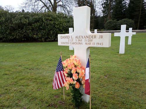 2nd Lt David L. Alexander attended college for two years and was an actor. He joined the U.S. Army Reserve in Clemson, South Carolina on 17 June 1942.Source of information: Nick Lieten, www.abmc.gov, www.findagrave.com, www.wwiimemorial.com, www.archives.gov – WWII Enlistment Record, www.ancestry.com – Headstone & Interment Record / 1930/1940 Census, The History of the 71st Infantry Division