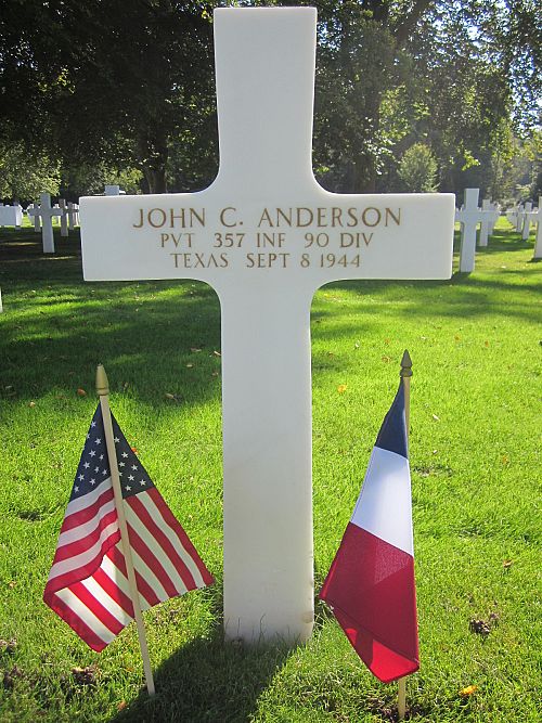 Pvt John C. Anderson enlisted in Camp Wolters, Texas on 20 March 1942.He was first buried at the Temporary American Military Cemetery in Champigneul, France.